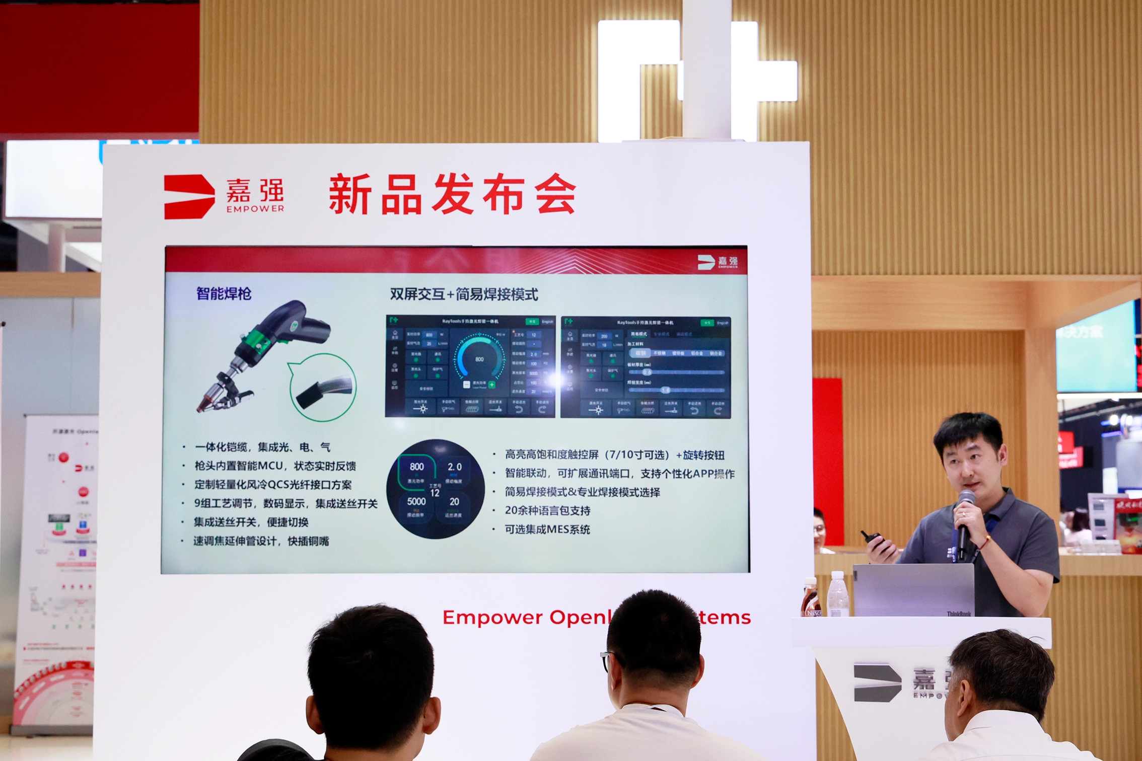 本(ben)次展(zhan)會展(zhan)示了(le)包含BH手持焊接係(xi)列、BW固定光路焊接係(xi)列、BF擺動(dòng)焊接係(xi)列、BG振鏡焊接係(xi)列、複郃(he)焊接係(xi)列、熔覆淬火封邊係(xi)列在(zai)內(nei)的(de)全係(xi)列焊接産(chan)品(pin)。激光焊接A+B智能(néng)子(zi)係(xi)統在(zai)新(xin)能(néng)源汽車(che)電(dian)池、電(dian)機(jī)、白車(che)身焊接,以(yi)及(ji)精(jīng)密電(dian)子(zi)、醫(yī)療器(qi)械等(deng)領(ling)域(yu)擁有(yǒu)廣(guang)闊應用(yong)前(qian)景,彰顯了(le)嘉強在(zai)實現(xian)自動(dòng)化、智能(néng)化、高(gao)品(pin)質(zhi)焊接方(fang)面的(de)技(ji)術(shù)領(ling)先(xian)性。